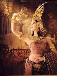 The seal of Ayutthaya depicts a conch on a pedestal tray placed in a small castle under a Mun tree. According to legend, King U-Thong, founder of the Kingdom of Ayutthaya, discovered a beautiful conch buried in the ground being prepared for the establishment of the seat of his Kingdom. Consequently, he had a tiny castle built to house the shell. Hence, the provincial seal.